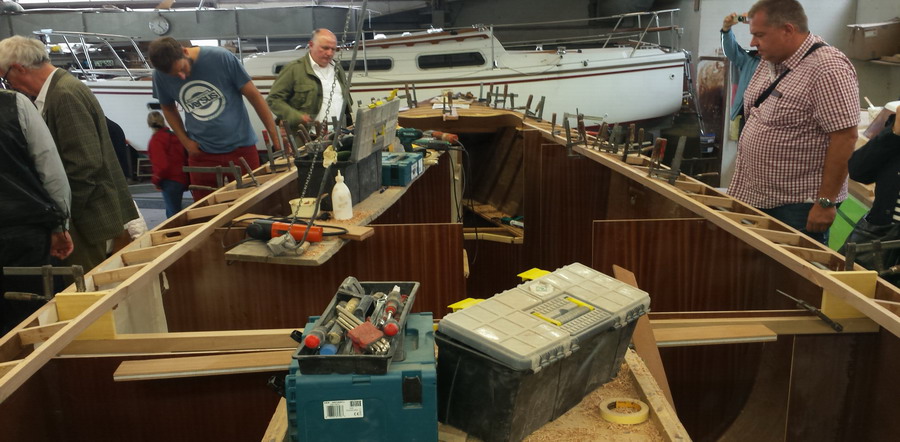 Gleichzeitig mit dem Ausbau der Innenschale wird das Yachtdeck gefertigt. Herr Bicker erläuterte nachvollziehbar und anschaulich die Reihenfolge und die Zusammenhänge beim Bootsbau. Alle Biga-Yachten werden nach Bestellung unter Berücksichtigung individueller Kundenwünsche gebaut und kaum eine Yacht ist so wie die Andere.