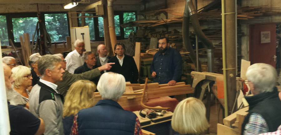 In der Schreinerei erhielten wir von Herrn Bicker viele Informationen über die Qualität der unterschiedlichen Hölzer und deren Verarbeitung. Die Information, wie schwierig heute die Beschaffung qualitativ guter Hölzer ist und wie lange das Holz gelagert werden muss, hat uns sehr erstaunt. Es schien, als wenn auch auf die Firma Bicker der Werbespruch „Das Beste oder nichts“ anwendbar ist. Wieder eine Parallele zu unseren „Landfahrzeugen“.