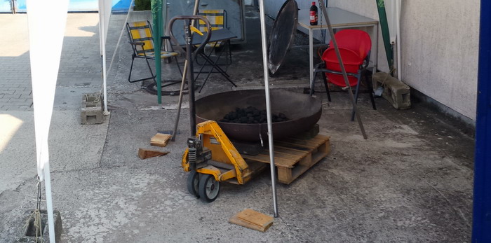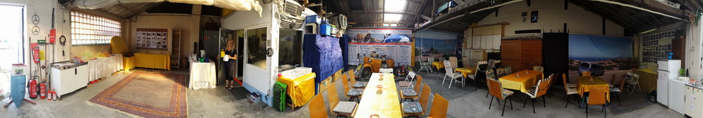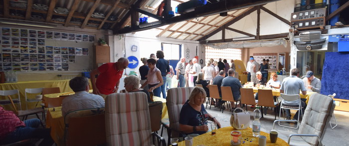 … die Fahrzeughalle umgeräumt und dekoriert sowie für einen kleinen Imbiss vorgesorgt.