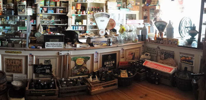 Nicht nur die Traktoren, Dampf- und Arbeitsmaschinen beeindruckten die Besucher des SKC und der SL-IG MiP sondern viele Besucher fühlten sich bei der Besichtigung der Nachbildung eines „Tante-Emma“ Ladens zurückversetzt in ihre Kindheit, als Milch noch in Milchkannen abgefüllt und „Klümpchen“ einzeln verkauft wurden.