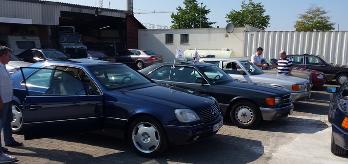 34 Fahrzeuge, u.a. Modelle der Serien 124, 126, 140 und 129 standen bald auch wie in einem Museum auf dem Hof und konnten besichtigt werden. Auch ein 850er BMW hatte sich zwischen die „Sterne“ verirrt und viele Gäste bestaunten den „Fremdling“, einst auch ein exklusives Fahrzeug seiner Zeit.