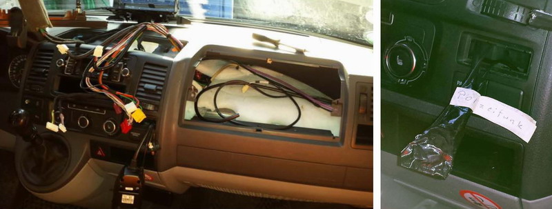 Bei der Rückrüstung des Fahrzeugs in eine zivile T 5.2 - Version sind viele Kabel einfach durchtrennt worden. Noch nicht einmal die Schnittstellen wurden isoliert. Völlig unverständlich, gefährlich und unverantwortlich, da auch stromführende Leitungen offen in der Isolierung hinter der Verkleidung lagen.