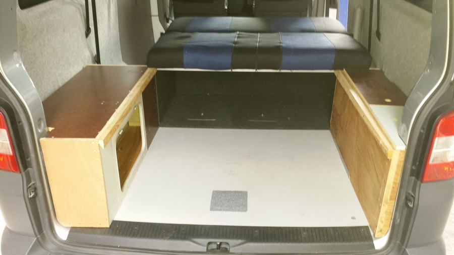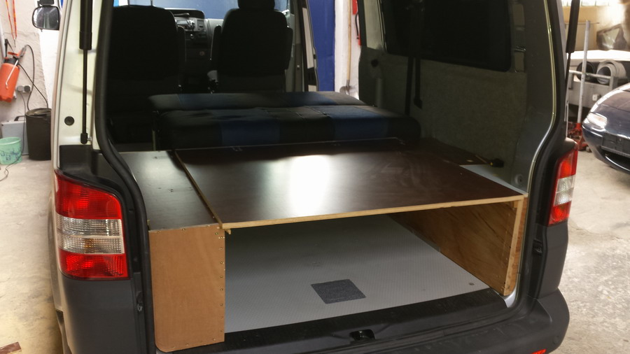 Mit der Bettunterlagen schon beinahe ein nutzbarer Campingvan.