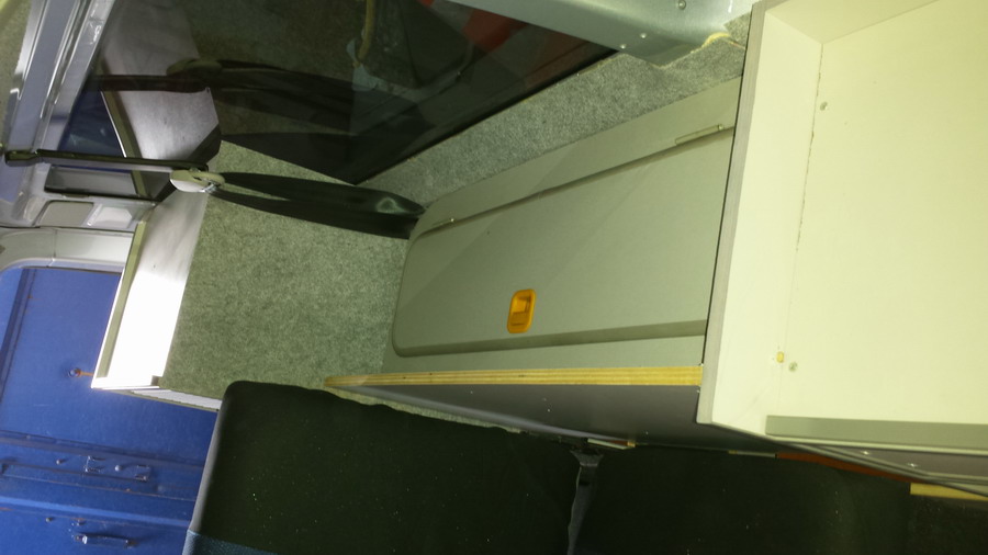 Auf der rechten Fahrzeugseite wurden beim Einbau der Bettverlängerung auch kleine Stauräumen für die Aufnahme des Bordwerkzeugs, Stromkabel, Stecker usw. eingerichtet. Auf der rechten und linken Fahrzeugseite dienen die Staufächer auch zur Aufnahme der Polsterunterlage für die Bettverlängerung.