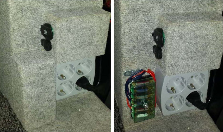Die Batteriehaltung wude (nur optisch) geändert und zusätzliche Steckdosen wurden am Batteriekasten neben dem dort befindlichen Sicherungskasten installiert