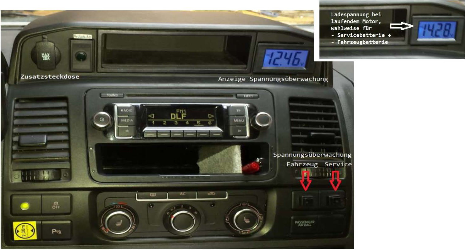 Etwas aufwändiger gestaltete sich der Einbau einer Lade- und Spannungsüberwachung mit einer weiteren Steckdose am Armaturenbrett.