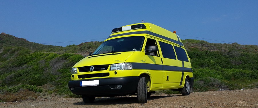 Der VW T 4 wurde im Jahr 2001 produziert und von WAS (Wietmarscher Ambulanz- und Sonderfahrzeug-GmbH) zu einem Patienten-Transportwagen erweitert und umgebaut. Das Fahrzeug wurde vom Deutschen Roten Kreuz als Kranken-Rückholfahrzeug eingesetzt, d.h. erkrankte Personen wurden aus Krankenhäusern im Ausland zurück an ihren Wohnort verbracht. (Langstreckenfahrten)
