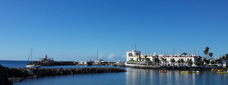 Durch die frühe Reservierung unseres Skippers haben wir wieder einen sehr schönen Liegeplatz unmittelbar vor dem turmartigen Gebäude des Hafenkapitäns, direkt neben dem Hotel Puerto de Mogan.