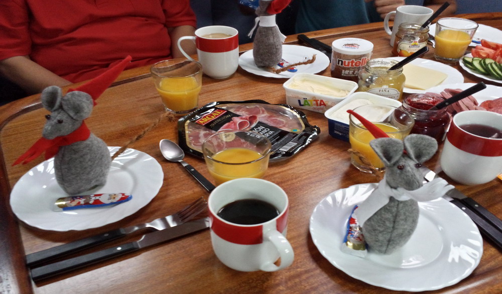 Kaffeeduft ist eine sehr gute Begründung, die Koje zu verlassen und den neuen Tag mit neuen Erlebnissen zu beginnen. Vor allem, bei einer gelungenen "Nikolausüberraschung" mit Nikomäusen, die Cord und Susanne mitgebracht haben.