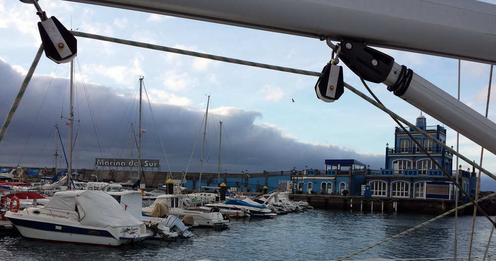 Schnell verzogen sich die Wolken, der Wind meinte es halbwegs gut mit uns und so ging es mit gesetzten Segeln ostwärts, Richtung Gran Canaria.