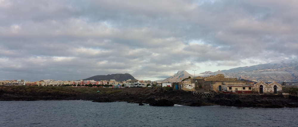 Entfernt voraus an Land sehen wir den Leuchtturm Faro de Rasca und steuerten nordwärts Richtung Puerto de los Christianos nahe Wal-City !