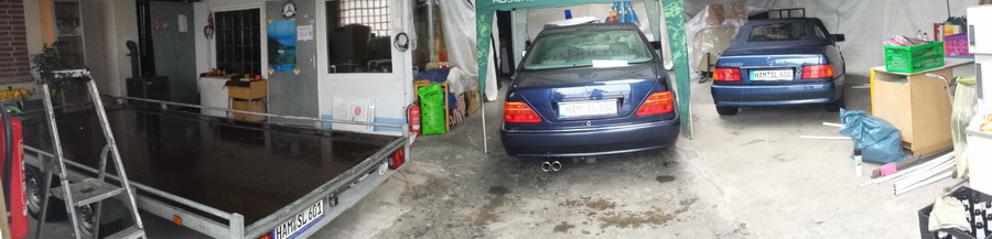 Nach dem Essen schauten wir zu unseren S-Klassen und konnten sehen, dass es sich auch bei einem 140er nicht unbedingt um ein „großes“ Auto handelt.