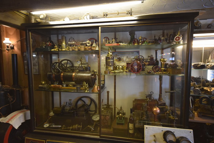 Neben den Dampfmaschinen und Kleinmotoren auch Kuriositäten, wie z.B. ein Auslaßventil einer Schiffsmaschine. (rechts hinter der Dampfmaschine)