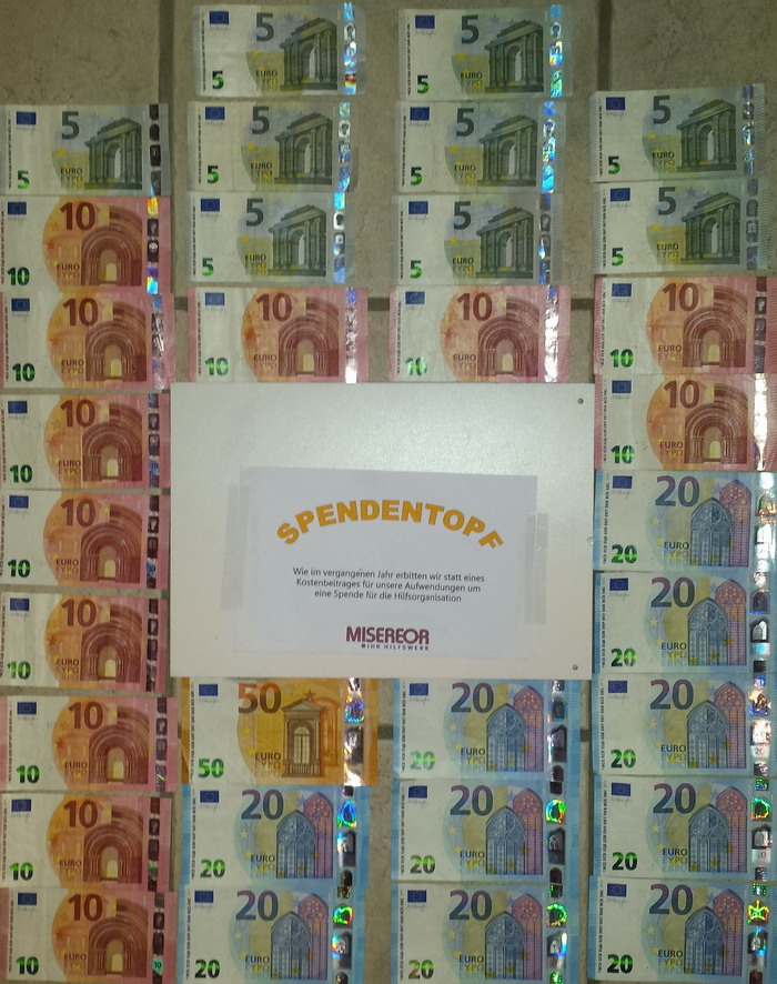 Anstelle eines Kostenbeitrages für die Bewirtung fand eine Sammlung für ein Schulprojekt in Afrika statt. (Misereor, Schulen für eine friedliche Zukunft).