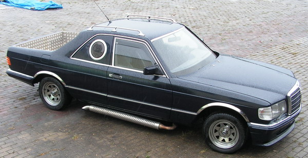 Unter den Mercedes-Modellen, Typ W 126, fand sich auch ein „Sondermodell“, ein zum PickUp umgebauter W 126 mit LKW-Zulassung, der aktuell restauriert wird,