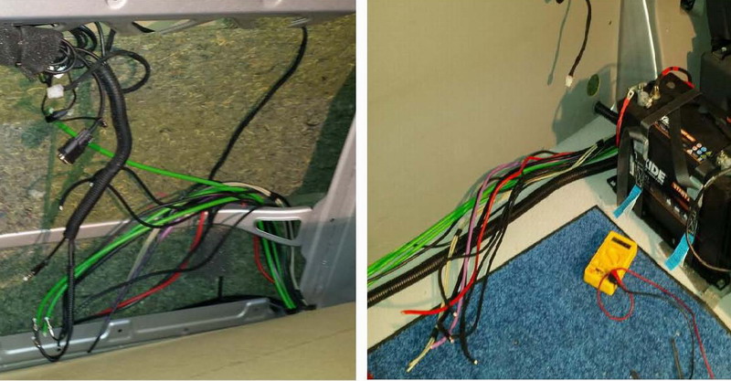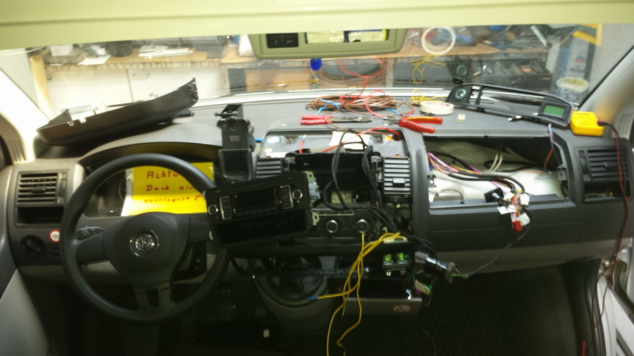 Bei der Rückrüstung des Fahrzeugs in eine zivile T 5.2 - Version sind viele Kabel einfach durchtrennt worden. Noch nicht einmal die Schnittstellen wurden isoliert. Völlig unverständlich, gefährlich und unverantwortlich, da auch stromführende Leitungen offen in der Isolierung hinter der Verkleidung lagen.