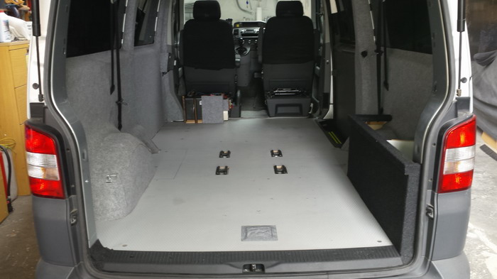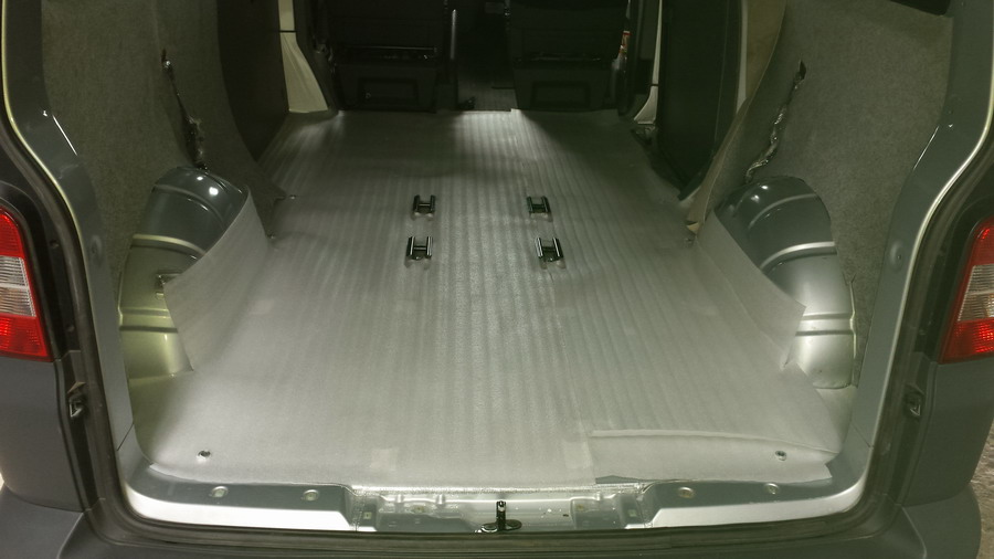 Schon vom Hersteller wurde der T 5.2 als Büro- bzw. Arbeitsfahrzeug für das BAG umfangreich isoliert, ähnlich der Multivan- oder California-Ausstattung. Zur Verbesserung der vorhandenen Isolierung musste die Einrichtung wieder ausgebaut und die komplette Innenverkleidung einschließlich des Bodens entfernt werden.