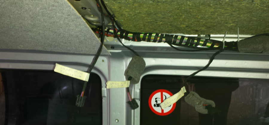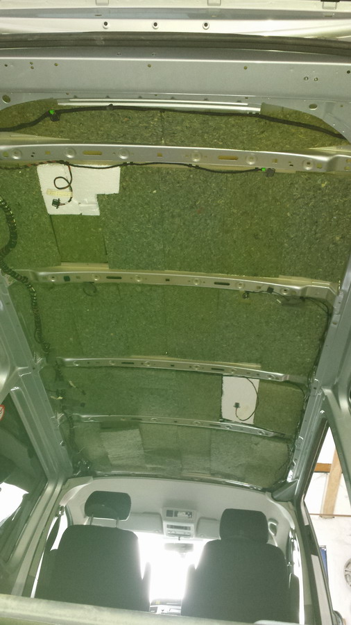 Da die Kabelbäume früher durch das Dach gehalten wurden, mussten sie nun durch Verklebung gesichert werden. Danach konnten die Hohlräume des Dach-Innenrahmens isoliert werden, um "laute" Hohlräume zu dämmen.