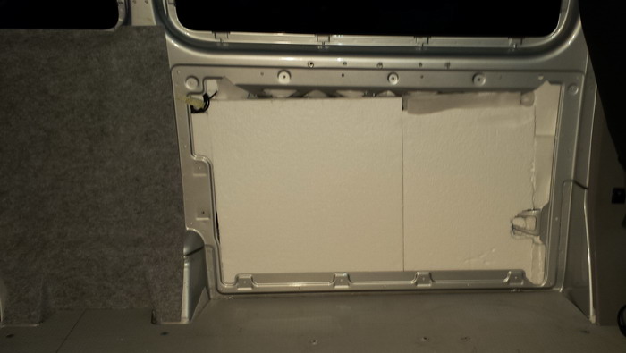 Danach wurde die original Innenverkleidung wieder eingebaut. Nachdem der Heckraum isoliert wurde, erfolgte die demontage der vorderen Wandverkleidung. Auch hier wurden Hohlräume so weit wie möglich nachisoliert und die bestehende Dämmung durch mehrlagige Styroporisolierung verbessert.