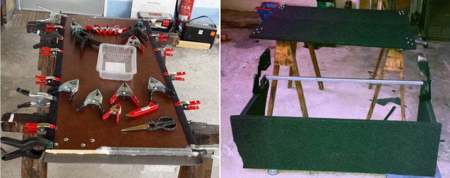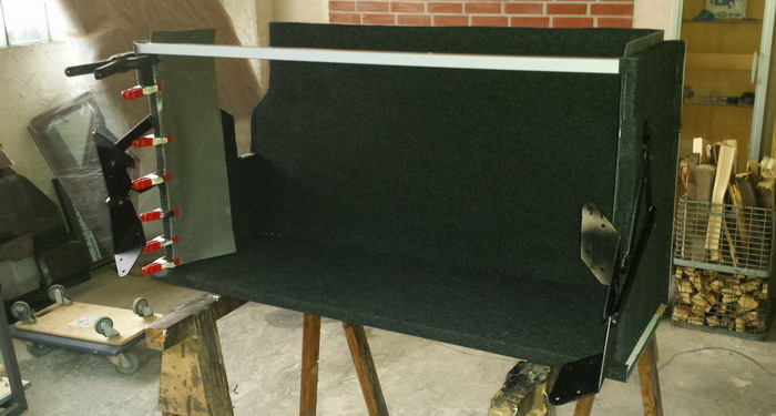 Die Klappscharniere wurden lackiert und die Unterkonstruktion der Bank wurde mit Ripp/Nadelfilz vollflächig verklebt.