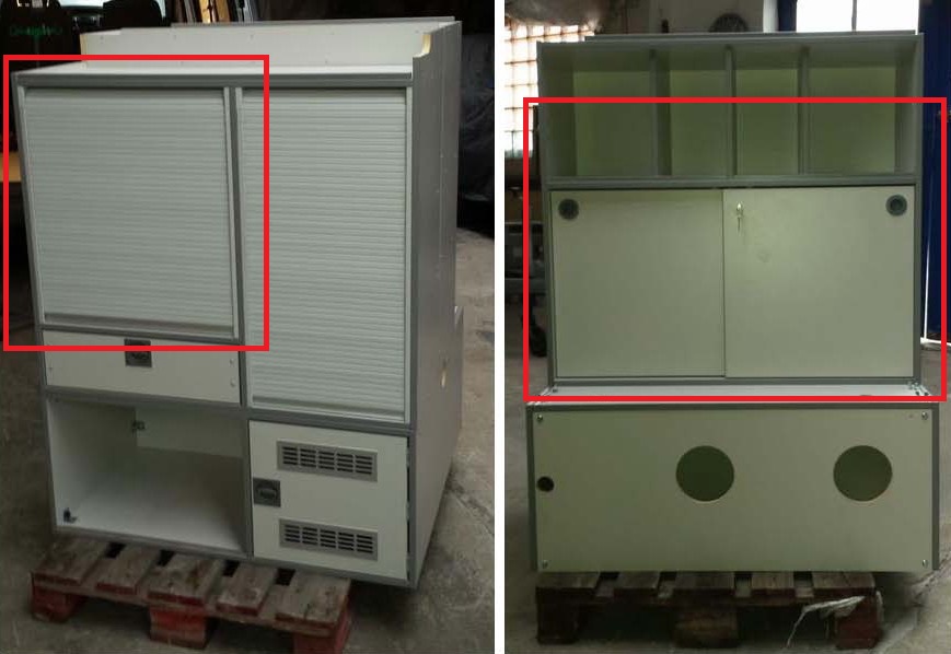 Ganz vorsichtig und mit sehr viel Geduld war es aber möglich den Schrank so zu zerlegen, dass ein Rolltür-Modul als Heckschrank genutzt werden konnte.