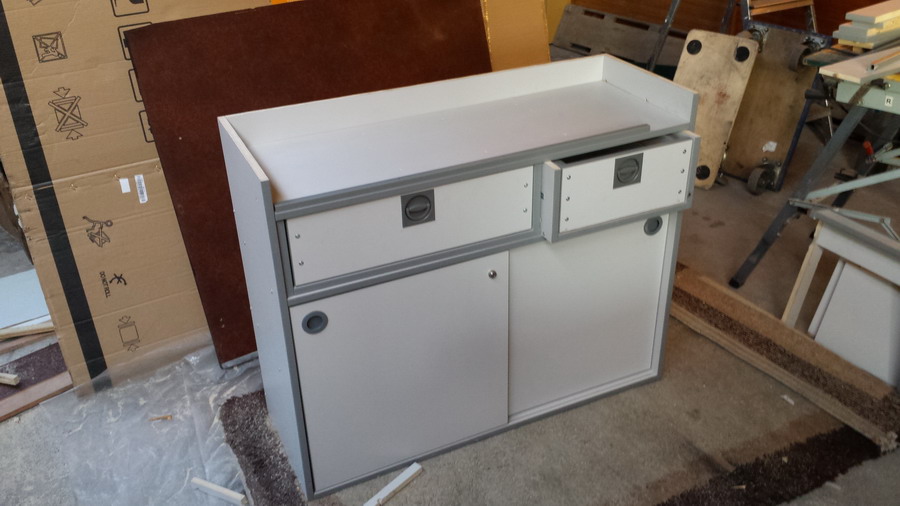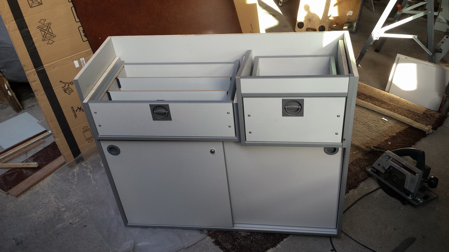 Auch die offenen Fächer waren unbrauchbar und wurden durch Schubladen ersetzt, die natürlich auch angepasst werden mussten.