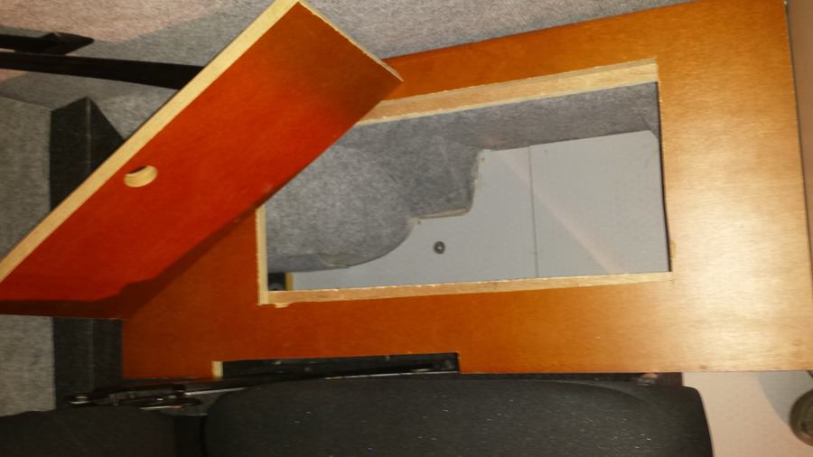 Der Boden wird später mit Rips-Bodenbelag verkleidet, so ist dieser Stauraum nicht sofort als solcher erkennbar.