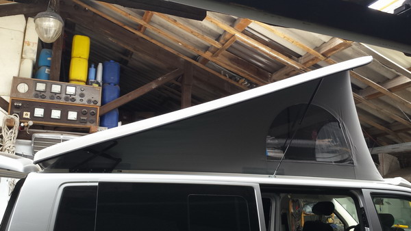Die lange Lieferzeit des geplanten Klappdachs verzögerte den weiteren Ausbau, aber nach vielen langen Wochen war auch das Klappdach montiert. Qualitätsbedingt fiel die Entscheidung auf ein hochwertiges (leider auch hochpreisiges) SCA-Dach.