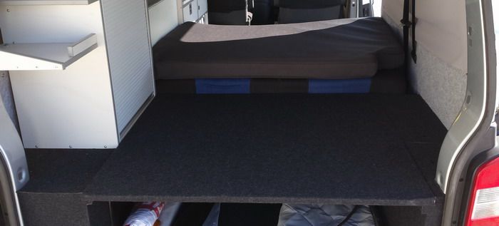 Mit der Bettunterlagen schon beinahe ein nutzbarer Campingvan.