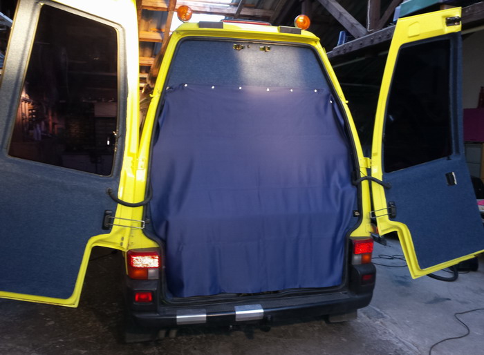 Alle Fenster können mit speziellen Verdunkelungsstoffen licht- und sichtdicht abgedeckt werden hinten einschließlich der Kofferraumöffnung. Statt der Verdunkelungsstoffe könnten u.U. auch Mückenschleier genutzt werden.