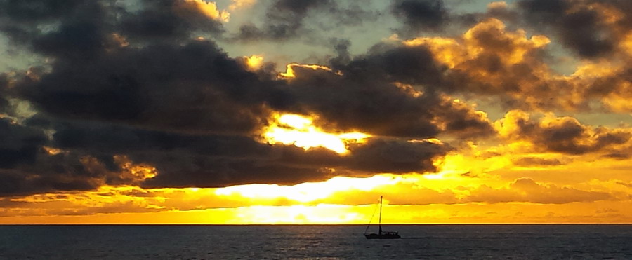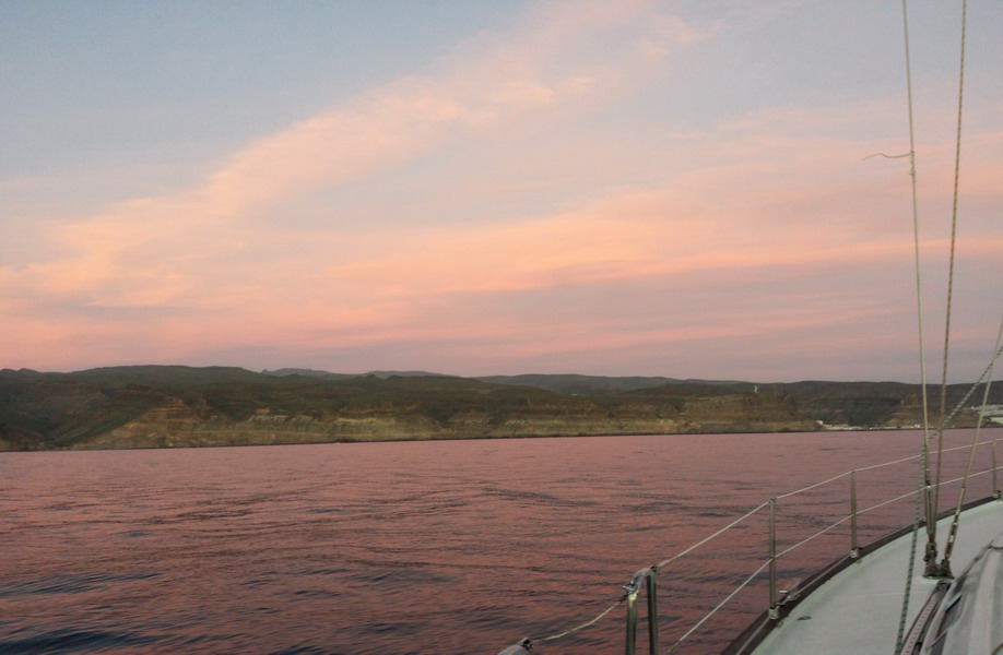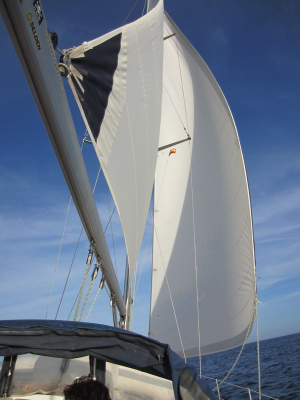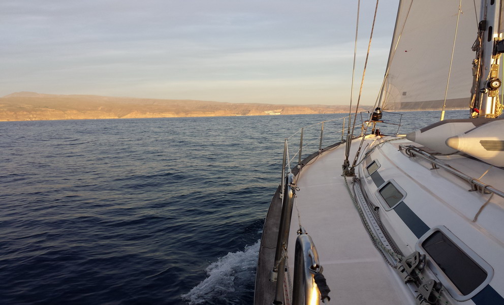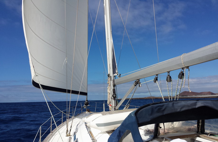 Schnell verzogen sich die Wolken, der Wind meinte es halbwegs gut mit uns und so ging es mit gesetzten Segeln ostwärts, Richtung Gran Canaria.