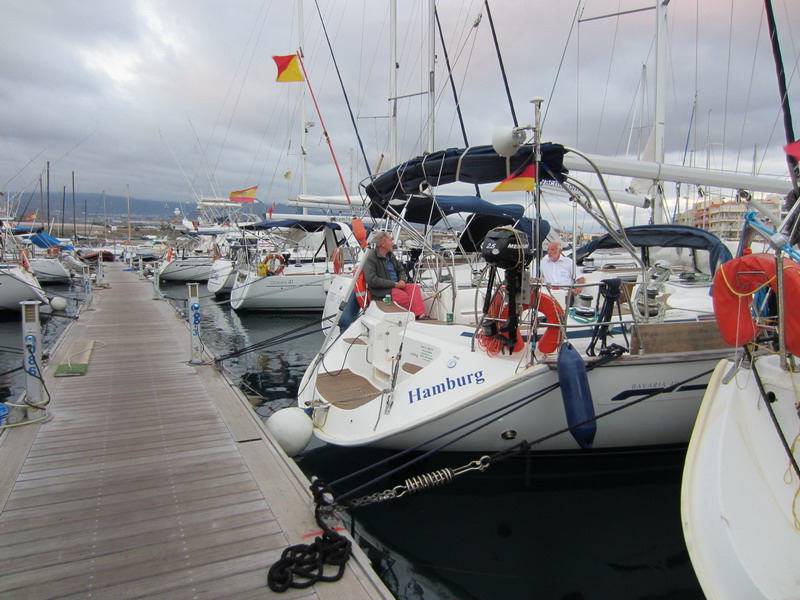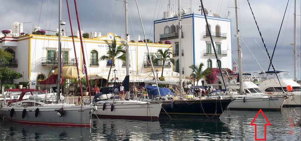 Durch die frühe Reservierung unseres Skippers haben wir wieder einen sehr schönen Liegeplatz unmittelbar vor dem turmartigen Gebäude des Hafenkapitäns, direkt neben dem Hotel Puerto de Mogan.