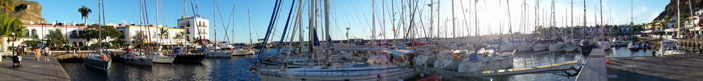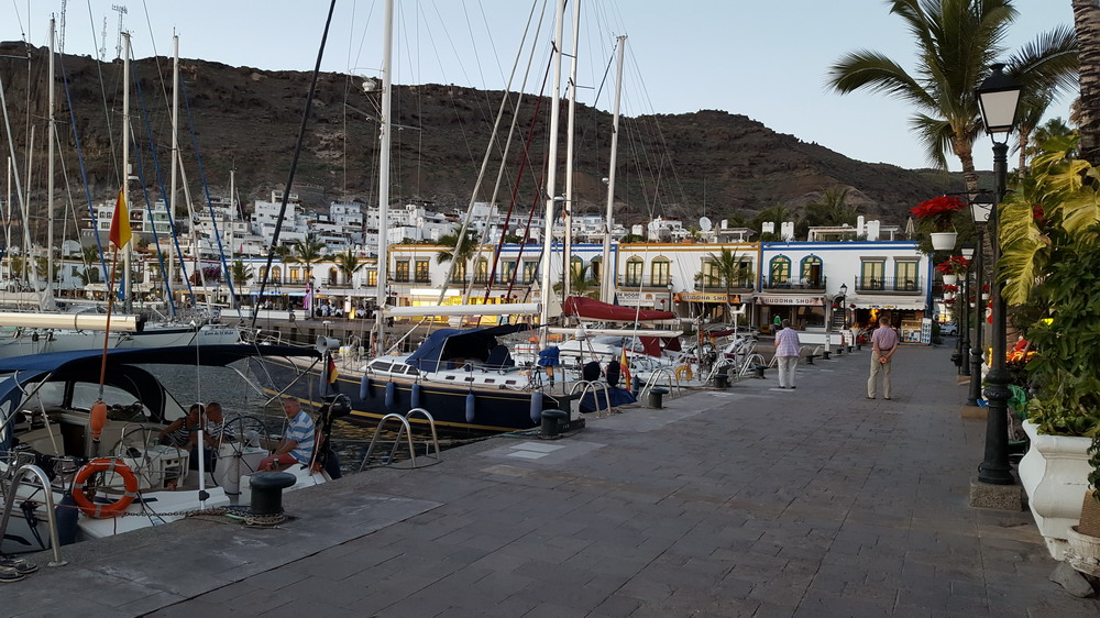 Wie so oft laufen wir mit den letzten Sonnenstrahlen in den Hafen Porto de Mogan ein.