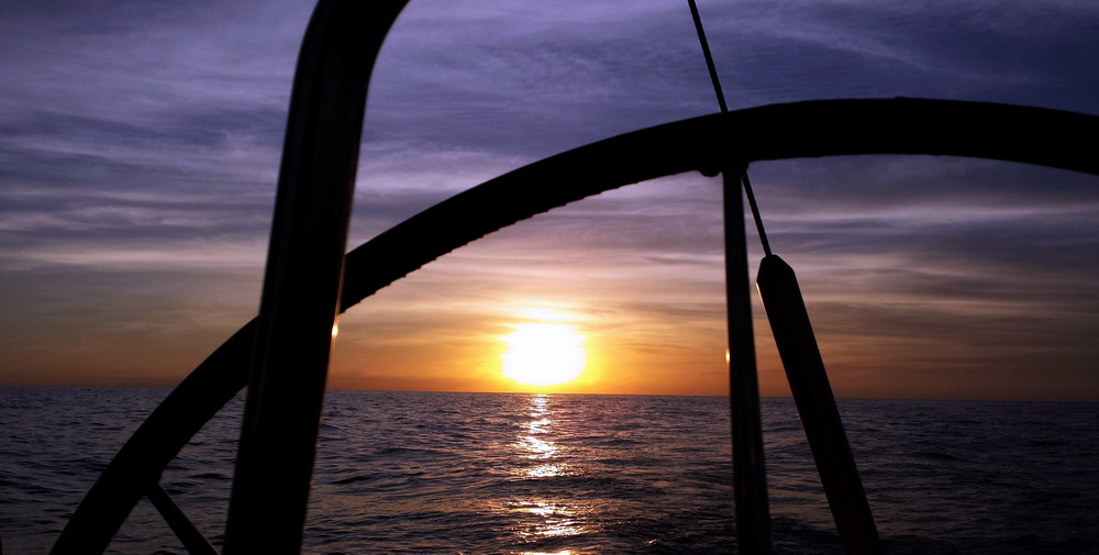 Der letzte Kurs führt uns zurück nach Mogan, heute nur 18 sm bei herrlichem Segelwind und wieder einem sehr schönen Sonnenuntergang auf See