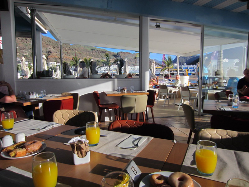 Wir gehen von Bord zu unserem letzten Frühstück im Hotel Puerto de Mogan.